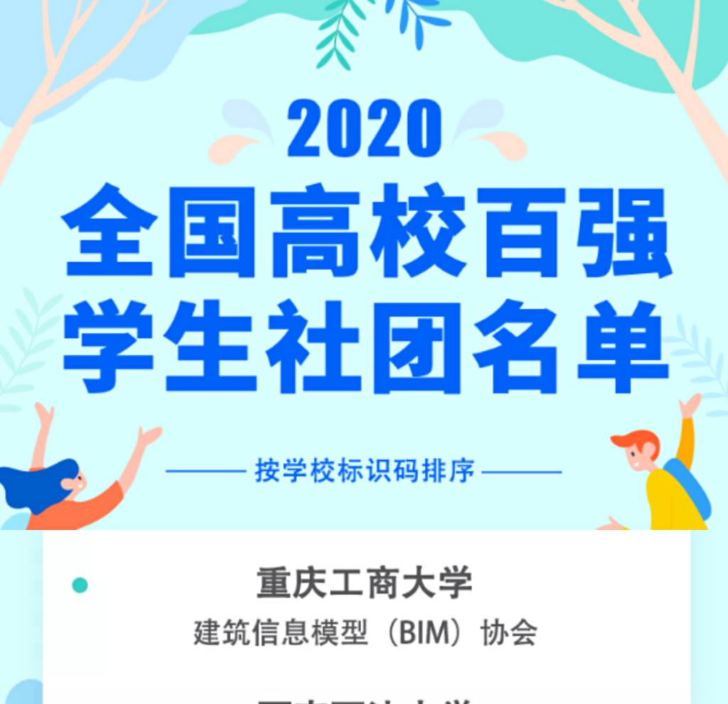 经过高校推荐、网络展示及投票、技术筛查、专家评审等环节,2020全国高校百强学生社团名单于6月15日正式公示。bat365官网工程管理专业BIM协会成功入选全国高校百强学生社团名单。本次评比由全国学联秘书处指导、中国青年报社主办。旨在向全国范围内通过新媒体方式集中展现高校学生社团的青春活力,体现大学生社团建设成果,引导和推动大学生社团工作创新和规范化管理。bat365中文官方网站BIM协会成立于2016年,由校团委和管理科学与工程学院...