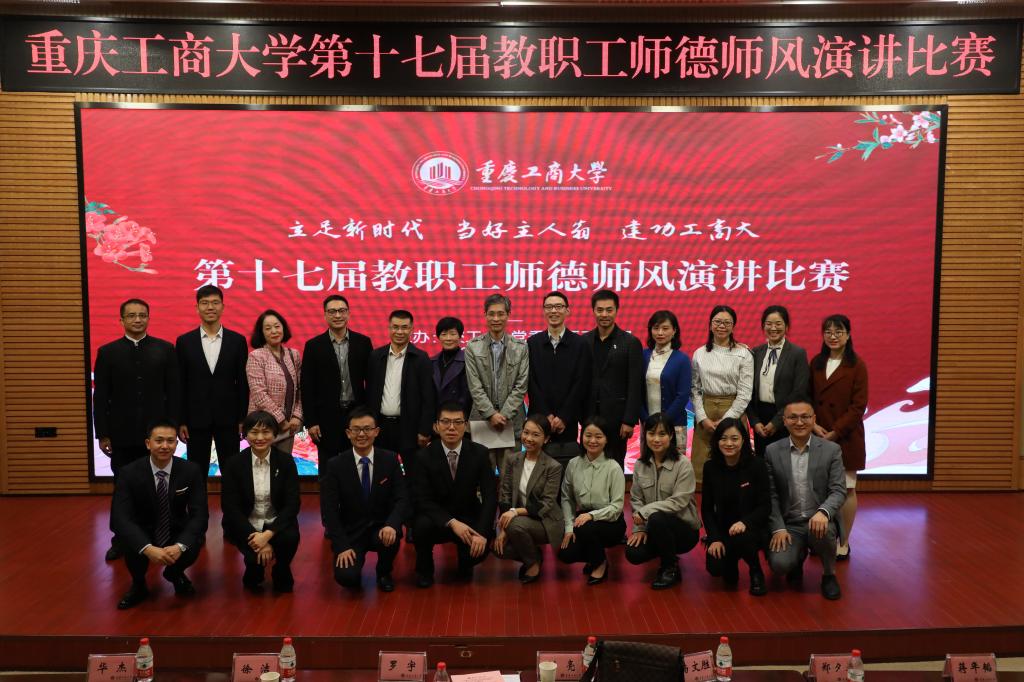 10月29日下午,由校工会、党委教师工作部联合举办的“立足新时代●当好主人翁●建功工商大”系列活动之第十七届教职工师德师风演讲比赛于博智楼7200报告厅举行。比赛邀请了市委宣传部舆情信息处处长刘亮,市教科文卫体工会副主席罗宇,重庆邮电大学国际汉语、演讲礼仪教师杨文胜,重庆交通大学校报编辑部主任徐洁,学校党委组织部部长郑夕春、宣传部部长华杰、档案馆馆长蒋年韬担任评委。校长孙芳城,校党委副书记宋豫,副校长...