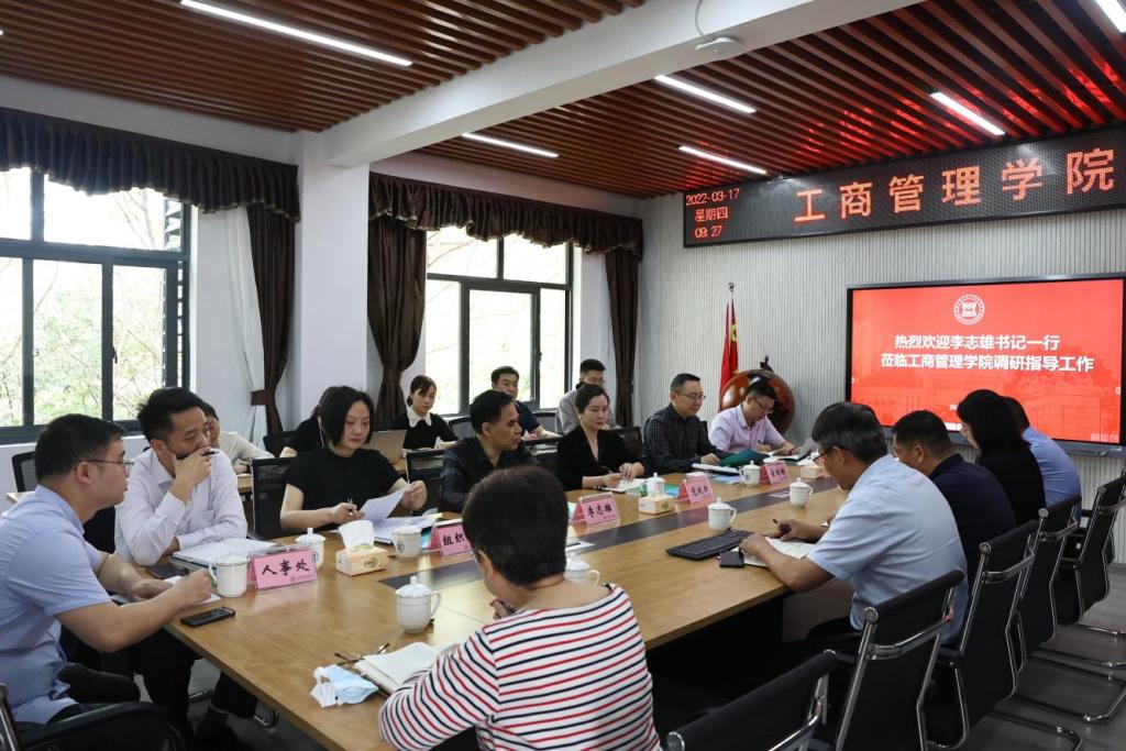 3月17日上午,学校党委书记李志雄和党委组织部、党委宣传部、党政办公室、人事处、招生就业处等相关部门负责人,到工商管理学院座谈调研全面加强党的建设相关工作。工商管理学院全体班子成员、科室负责人、系主任等参加了座谈会。学院党委书记彭勇围绕“以优异的成绩、良好的精神状态向二十大献礼”为主题,从学院加强党建工作,促进“双创”建设;抓好学院师生意识形态与安全稳定工作;党政一心、全员参与促进就业工作;全力以...