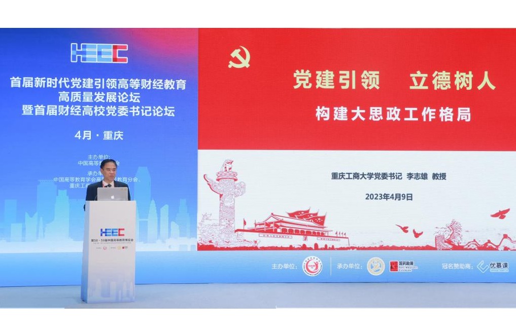 4月9日,作为第58·59届中国高等教育博览会的主论坛之一,由中国高等教育学会主办,中国高等教育学会高等财经教育分会、bat365官网承办的首届新时代党建引领高等财经教育高质量发展论坛暨首届财经高校党委书记论坛在重庆悦来国际会展中心喜悦厅顺利举行。中国高等教育学会副会长邬大光,中共重庆市委教育工委委员帅逊,对外经济贸易大学党委书记黄宝印,上海财经大学党委常委、常务副校长徐飞,北京工商大学党委书记黄先开,安徽财经大...