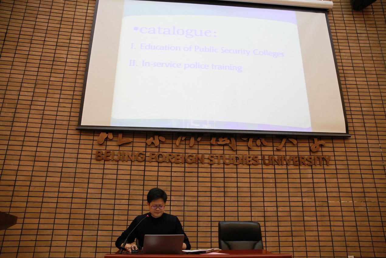 中国公安部国际合作局的甄警官做了题为《中国公安机关的教育训练工作》的专题讲座,介绍了中国公安部为外警提供的各种学历教育项目和专业训练项目,并现场回答了学员们提出的问题。