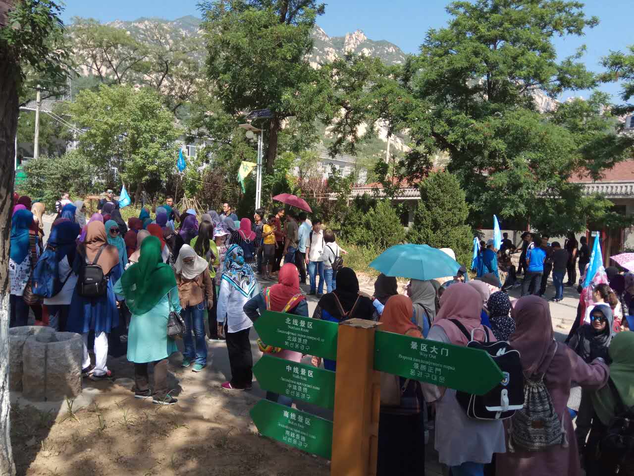 5月26日一早,北外中文学院对外汉语系全体马来师资项目的留学生及教师一行222人,从北外出发到访北京郊区进行一天的市内语言实践活动。上午9点到达凤凰岭,在导游的带领下,同学们不惧高温,坚持爬上了凤凰岭。午饭后,同学们来到了车耳营民俗村,进入农户家进行深入访谈!访谈结束后,下午五点到达北外结束了一天的语言实践活动!