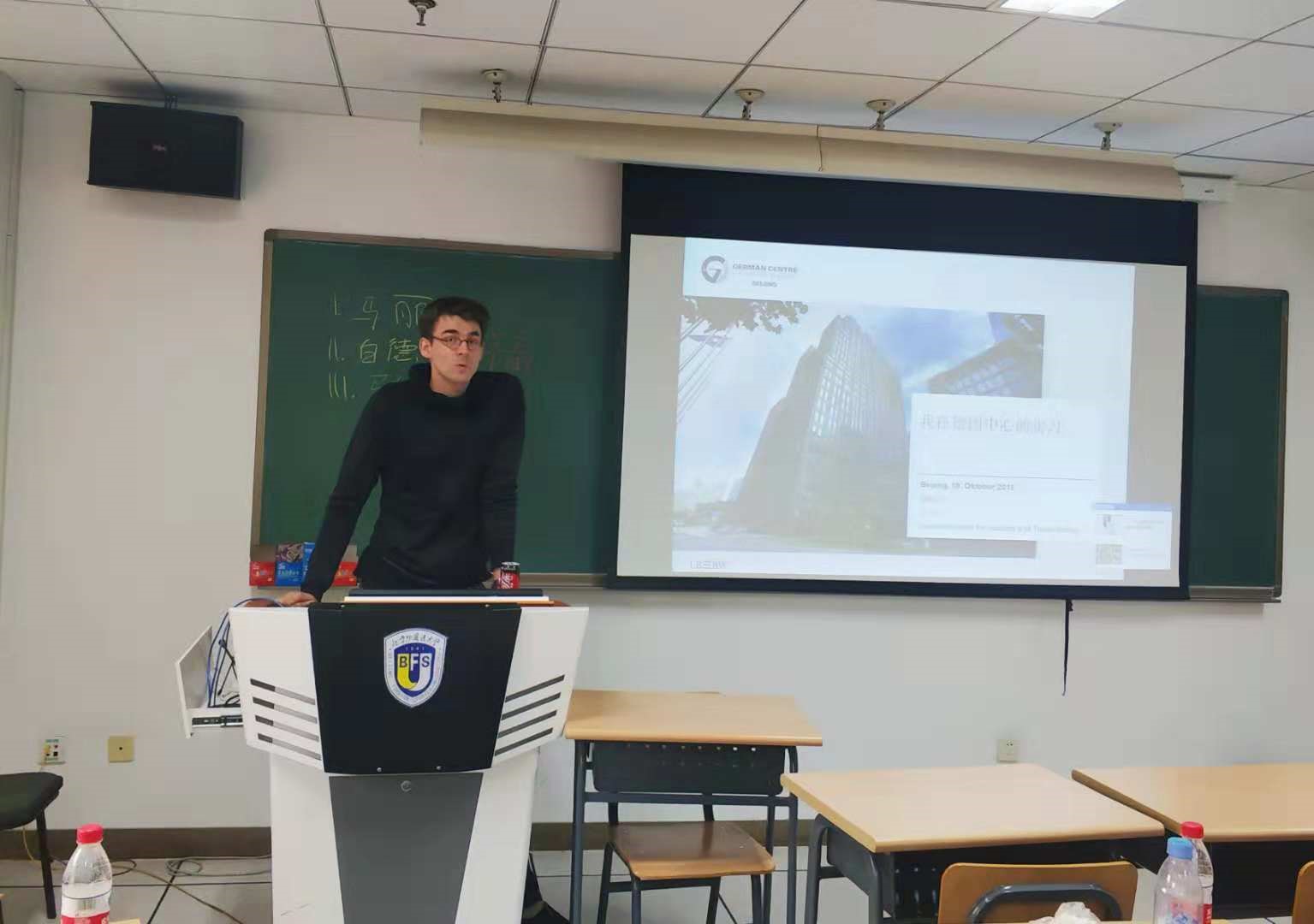 报告会上,学员们用汉语介绍了公司在华的发展历程及现状,汇报实习期间负责的工作内容,并分享了在当地的生活体验。他们对自己的实习经历使用了“非常满意”这样的语句来形容,并且十分感谢在北外学习的汉语课程能让他们更好地适应当地的生活。报告准备充分,语言清晰流畅。学员们在汇报时表达了对今后留在中国工作的兴趣,在欧亚咨询公司实习的马智同学将继续留在上海工作称为自己的“中国梦”。孙琳老师积极评价了同学们的实习汇报,并鼓励他们努力实现自己的梦想。