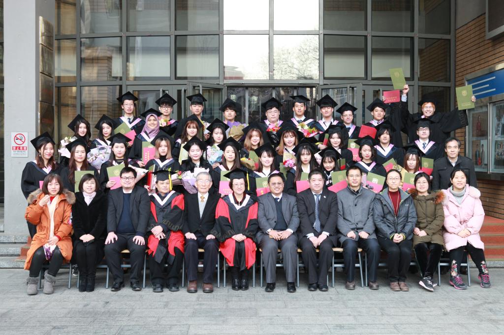 马来西亚驻华使馆教育参赞侯春兴先生、日本NPO法人国际交流教育后援会理事铃木辉康先生、日本NPO法人国际交流教育后援会学生辅导员染谷泰辅先生、PA集团官方网站国际处副处长李冰、PA集团官方网站中文学院执行院长张晓慧、PA集团官方网站中文学院副院长陈小明、PA集团官方网站中文学院院办公室主任张学增、对外汉语系主任朱勇等授课教师代表出席了毕业典礼。2019届毕业生共34人,他们分别来自日本、韩国、波兰、马来西亚。