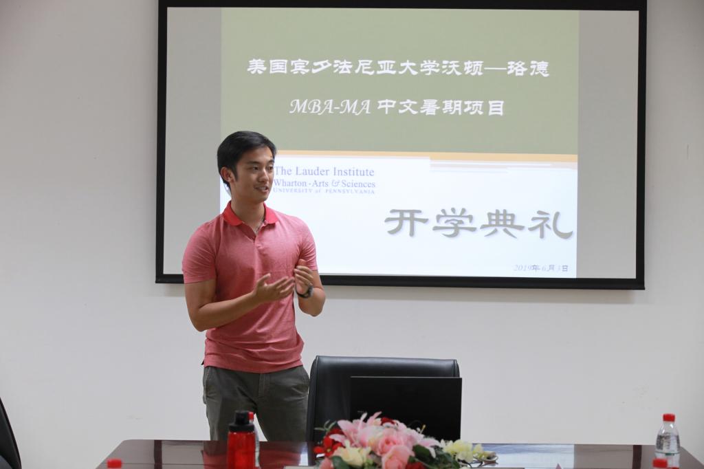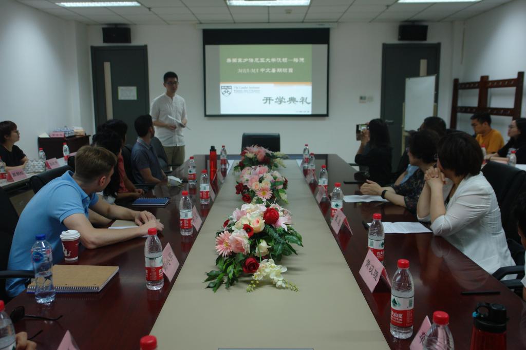 张晓慧院长在欢迎致辞中说,沃顿商学院一直以培养高端商务人才为已任,而中文学院也拥有长期的商务汉语教学传统,两个学院的合作,可谓相得益彰。她鼓励学员在为期五周的学习中不仅要提升语言水平,还要利用在中国的契机加深对中国社会的理解。李冰主任介绍了北外的多语种建设与国际化水平,并追本溯源,回顾了自中文项目“落地”北外以来近20年的发展历程。作为项目重要参与方和支持方,外研社综合语种教育出版分社社长崔岚介绍了外研社的发展历史及作用。