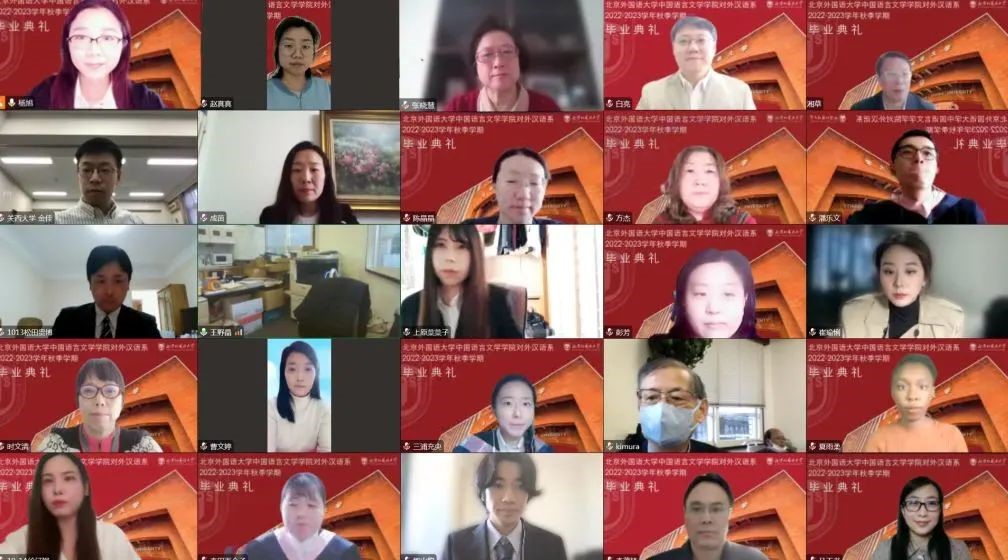 2022年12月22日,PA集团官方网站对外汉语系2022——2023学年秋季学期本科留学生毕业典礼在腾讯会议平台如期举行。日本NPO法人国际交流教育后援会理事长木村太郎、事务局次长郑新培、日本关西大学外国语学部副教授金佳、日本NPO法人国际交流教育后援会事务局员王野晶、学生辅导员松田贵博、PA集团官方网站国际处副处长李茂林、中文学院执行院长李建盛、副院长白亮、副书记曹文婷、国际事务中心负责人张晓慧、行政办公室主任王慕尧、留学生工作室主任成苗、对外汉语系任课教师、全体毕业生及家长通过腾讯会议平台参加了毕业典礼。毕业典礼由对外汉语系主任杨旭主持。