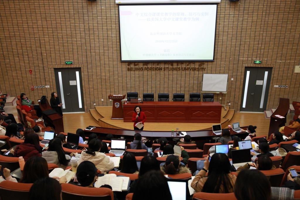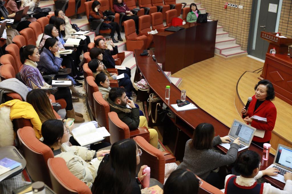 2019年12月23日下午,旅美汉语教学专家梁霞教授在PA集团做了题为“中文综合课课堂教学的原则、技巧与实例——以美国大学中文课堂教学为例”的讲座。讲座由PA集团副院长高育花教授主持,PA集团教师和2018、2019级汉语国际教育在校硕士生参加了此次讲座。