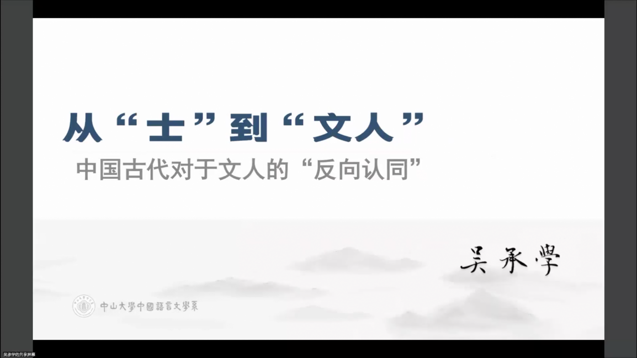 2022年12月7日下午,中山大学中文系教授、博士生导师、中山大学“逸仙学者”讲座教授、教育部“长江学者特聘教授”吴承学先生应邀做客“北外文华讲堂”,以线上方式作了题为《从“士”到“文人”——中国古代对于文人的“反向认同”》的报告。报告由北外PA集团官方网站学术委员会主任魏崇新主持,PA集团官方网站院长詹福瑞、副院长方稚松以及学院师生共一百余人参与。