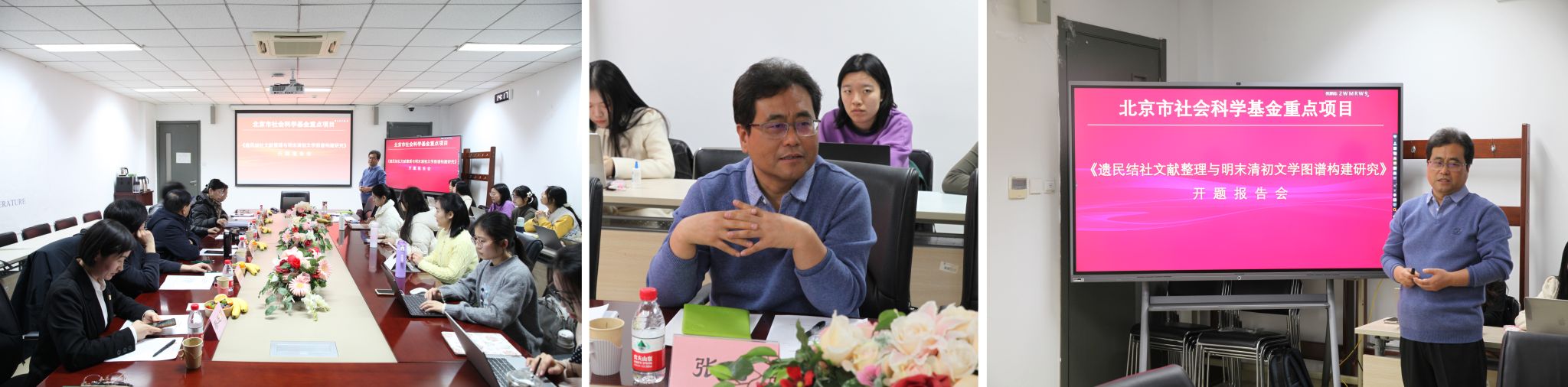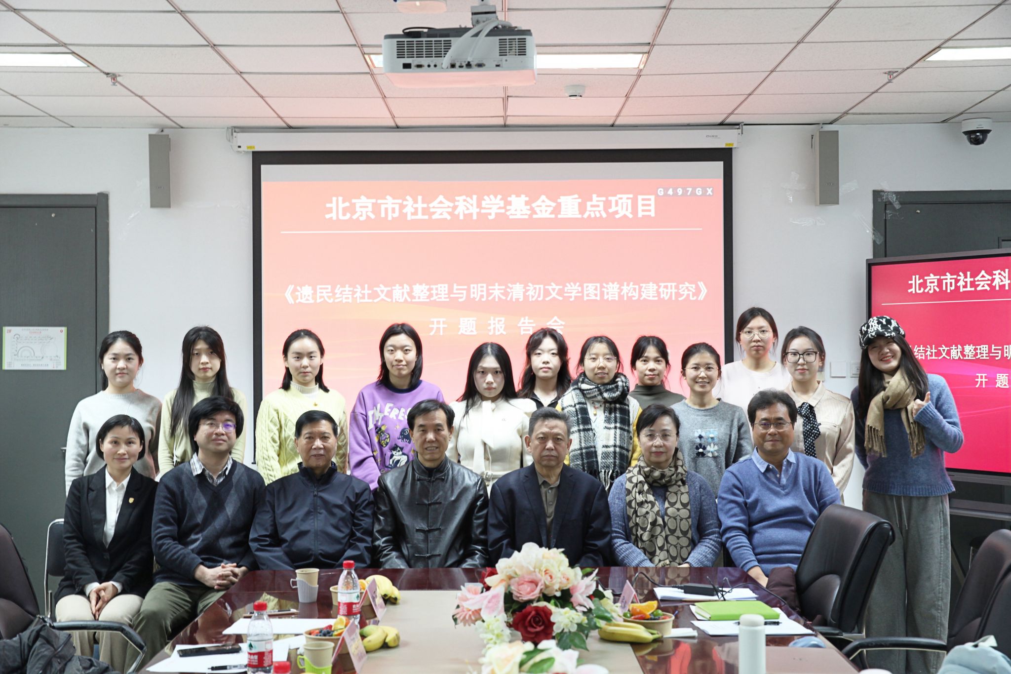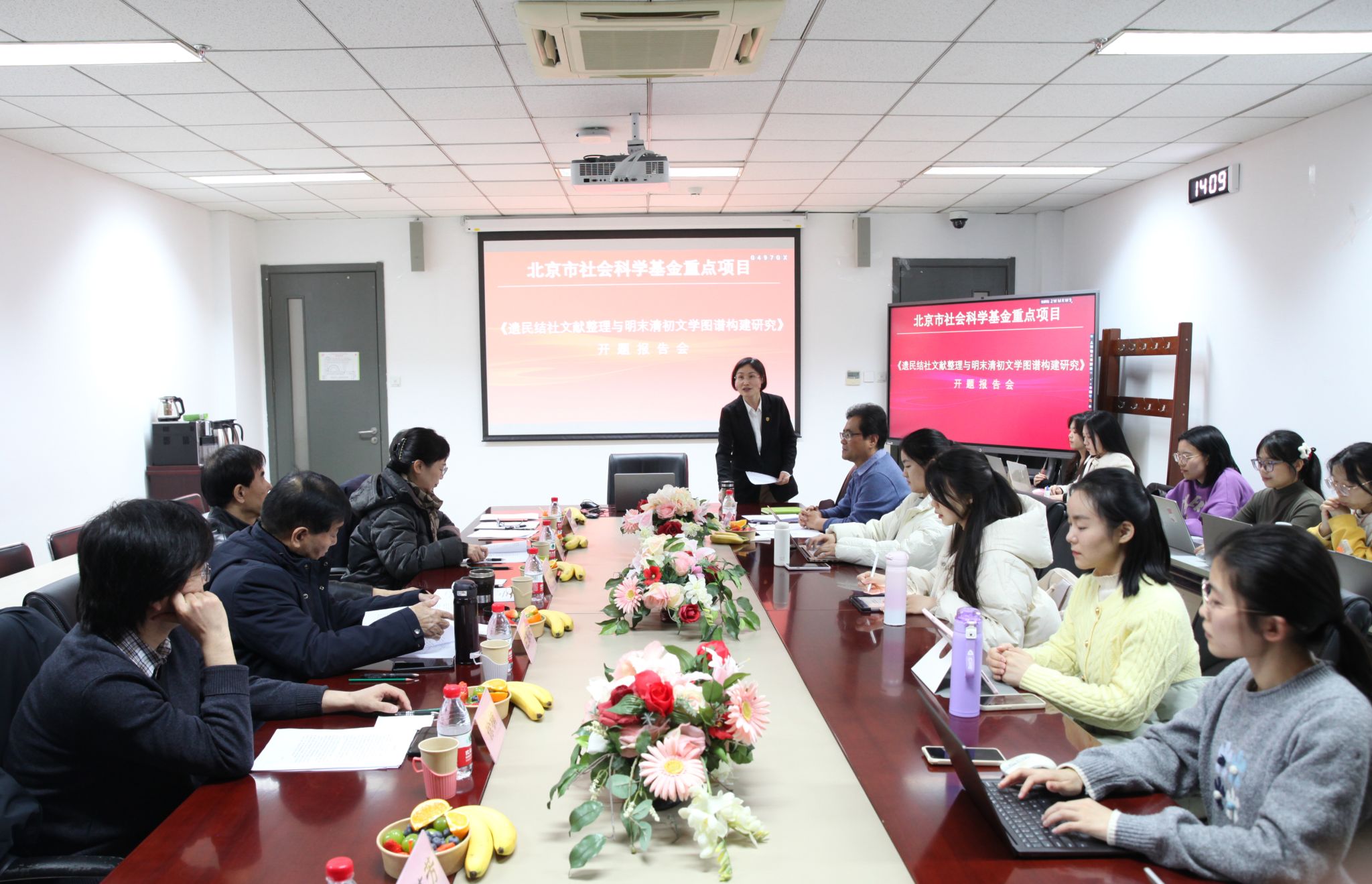 2024年12月26日下午,北京市社会科学基金重点项目《遗民结社文献整理与明末清初文学图谱构建研究》开题报告论证会在PA集团官方网站204会议室举行,该项目负责人为北外中文学院张涛教授。开题报告邀请了北外中文学院名誉院长詹福瑞教授、中国人民大学徐正英教授、北京师范大学杜桂萍教授、首都师范大学左东岭教授、中国人民大学徐楠教授作为专家参与论证,詹福瑞教授担任主持。中文学院党总支书记蔡芝芳以及学院十余名中国古代文学专业研究生参加会议。