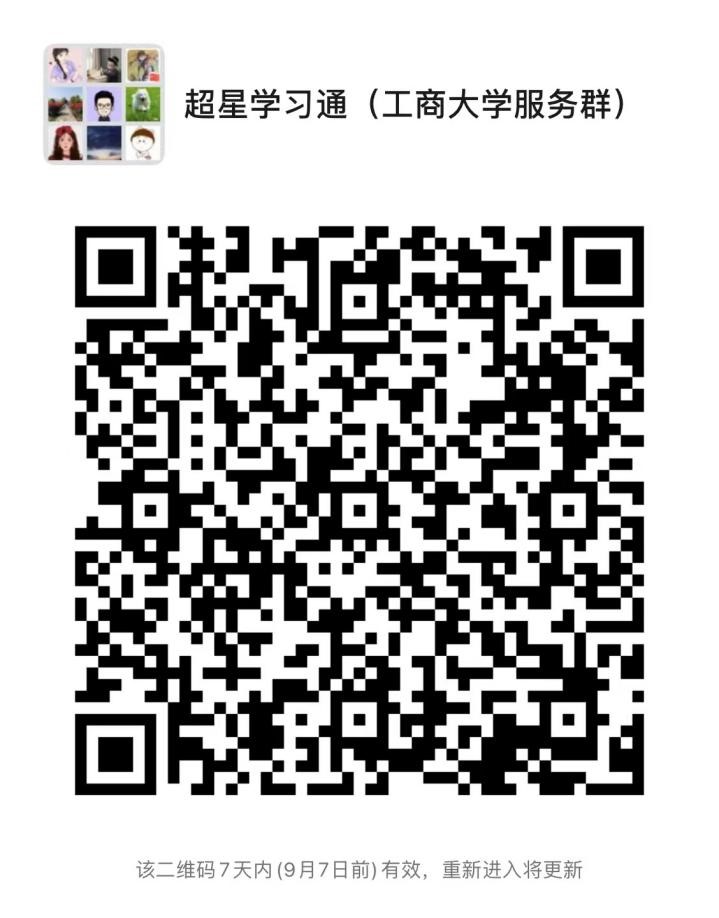 技术支持:扫码加入微信服务群“超星学习通(工商大学服务群)”