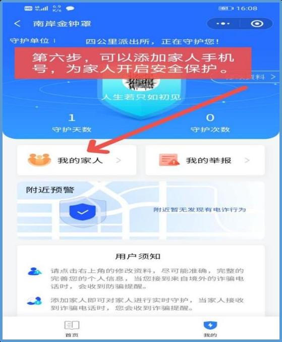 【第六步】:添加家人手机号,为家人开启安全保护。