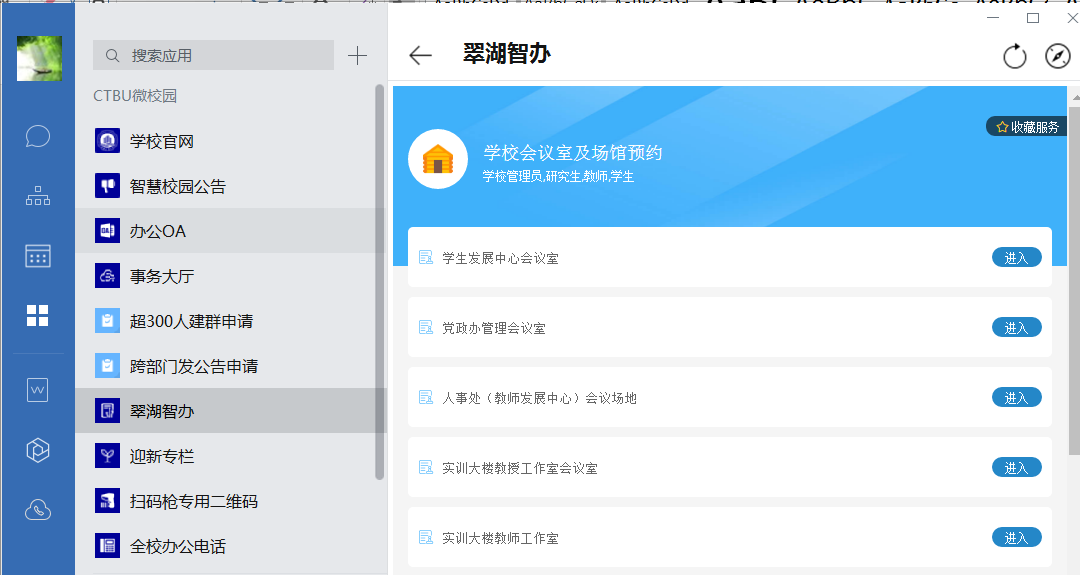 通过bat365中文官方网站企业微信平台--翠湖智办--服务中心--学校会议室及场馆预约—实训大楼教师工作室预约。