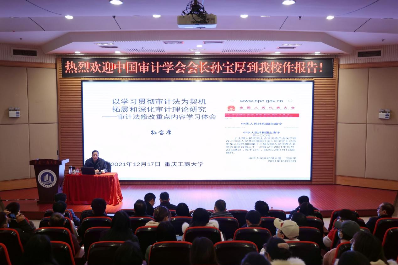 12月17日,中国审计学会会长、原国家审计署副审计长孙宝厚,《审计研究》编辑部主任王彪华一行来bat365官网进行学术交流。
