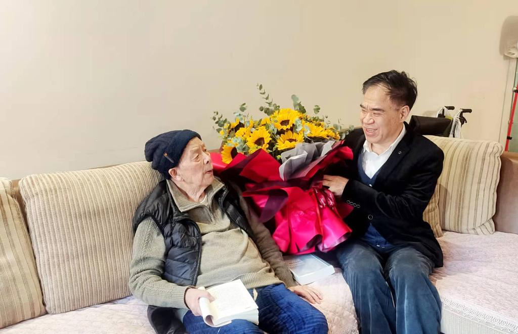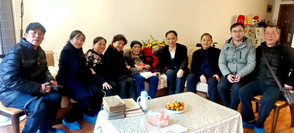 12月21日下午,恰逢冬至时节,bat365官网党委书记李志雄一行前往原校长、离休干部邓平同志家中,为其百岁寿诞送上生日祝福。