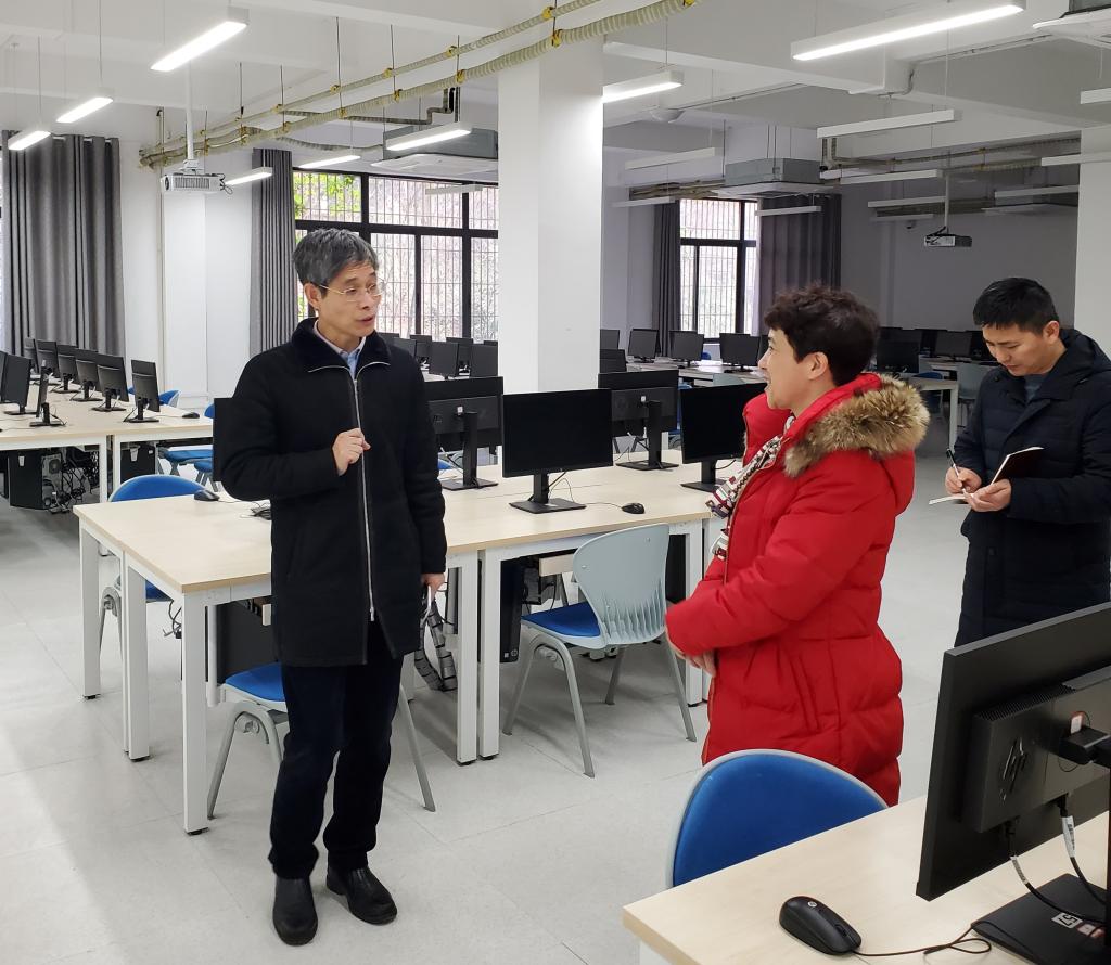 1月2日下午,校长孙芳城到经济管理实验教学中心调研指导工作。经济管理实验教学中心主任陈永丽、副主任尹元福陪同查看了新建的智慧实验室、与相关学院联合共建的特色实验室以及即将升级改造的实验室。