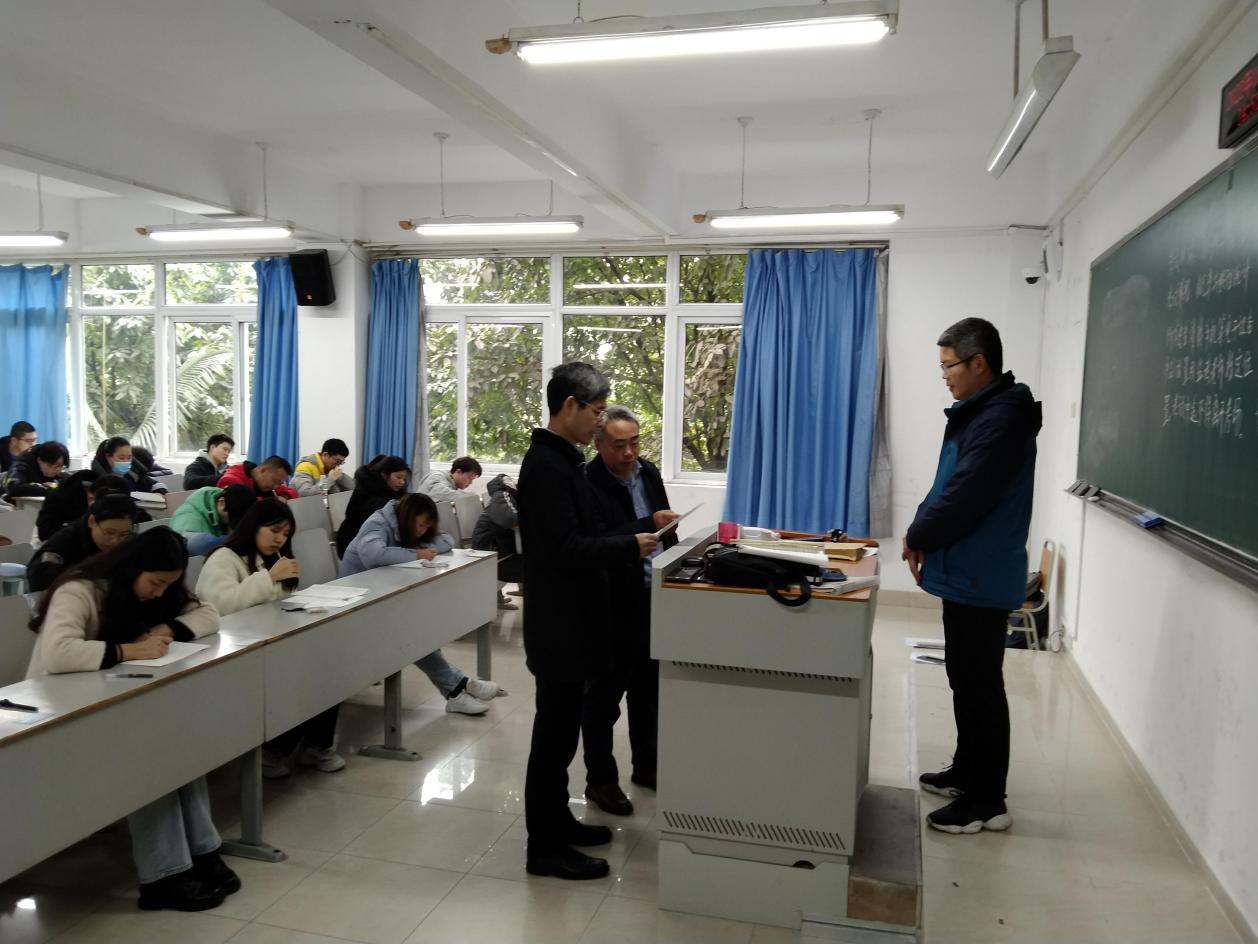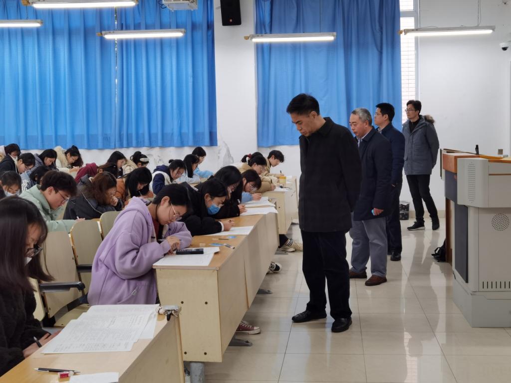 近日,学校进入期末集中考试阶段,党委书记李志雄、校长孙芳城在党政办公室、党委学生工作部、教务处、教学质量监督与评估办公室等部门负责人陪同下,先后深入校内各考点巡察期末考试情况。