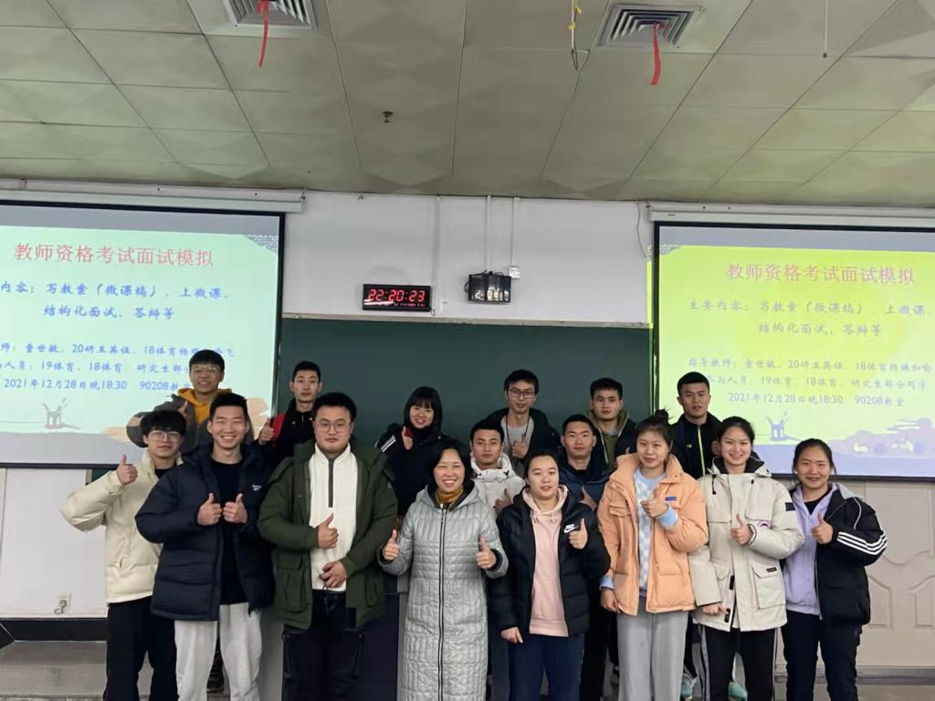 1月6日,获评2021年bat365中文官方网站师德先进个人的体育学院童世敏教授为即将参加教师资格面试学生进行模拟训练与专场指导,同时邀请了多位研究生、本科生做经验交流分享。