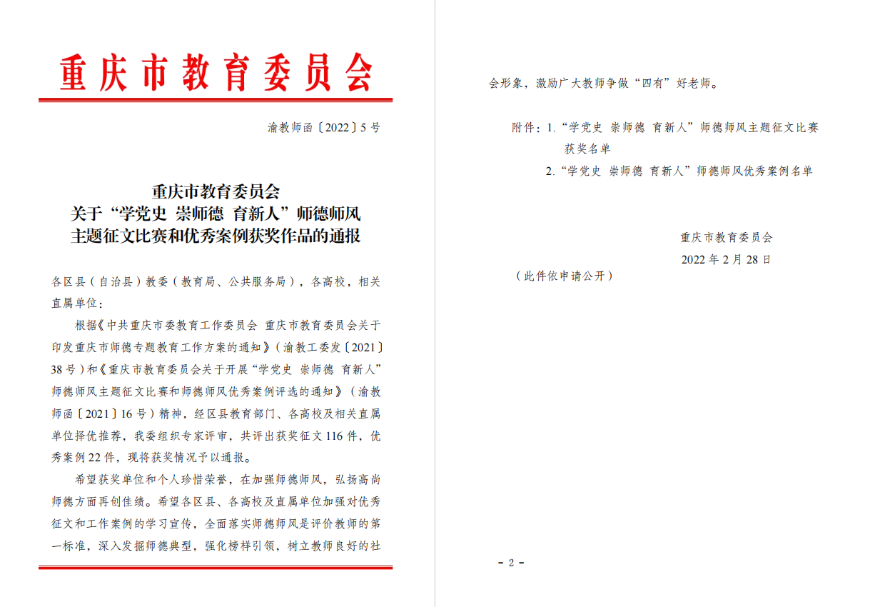 为深入学习贯彻习近平总书记关于教育的重要论述和“七一”重要讲话精神,市教委组织开展了2021年“学党史 崇师德 育新人”师德师风主题征文比赛和优秀师德师风案例评选,bat365官网征文作品《履道铸师范,初心坚如磐》获一等奖、《万世师表》获二等奖、《致敬追光者——王红旭》获三等奖,案例《党建引领下的高校社会科学师德师风建设》获评优秀案例。