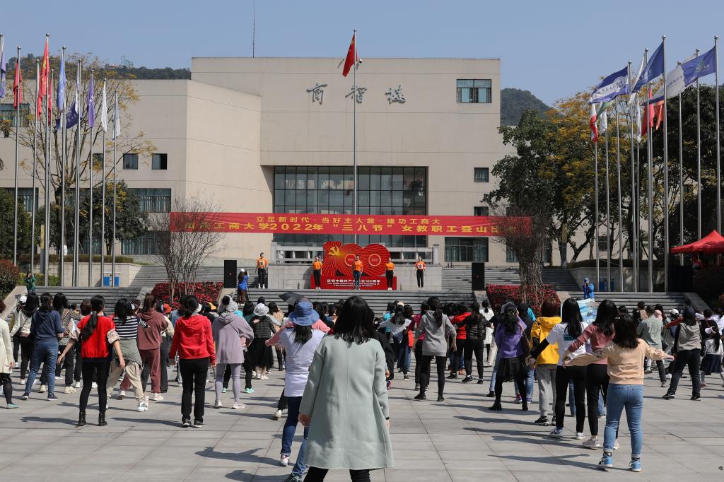 在这春风拂面、草长莺飞的三月,我们迎来了第112个“三八“国际劳动妇女节。3月8日下午,“立足新时代、当好主人翁、建功工商大”女教职工登山比赛正式举行。学校党委书记李志雄,党委副书记宋豫,党委常委、副校长李国军,各学院、部门工会女教职工代表,特邀男教职工共计三百余人参加了此次活动。