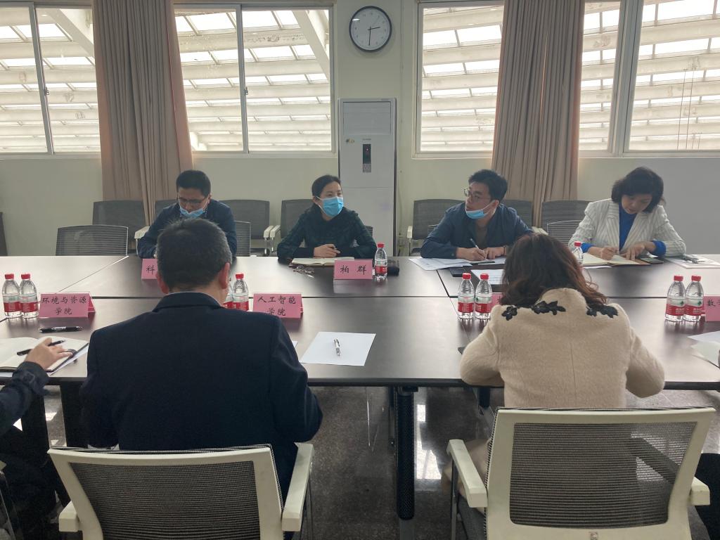 329日下午,学校党委常委、副校长柏群带领科研处、国际合作与交流处负责人调研指导理工类学院科研与外事工作。座谈会在慧智楼90506召开,人工智能学院、机械工程学院、环境与资源学院和数学与统计学院的院长及分管科研副院长参加会议。