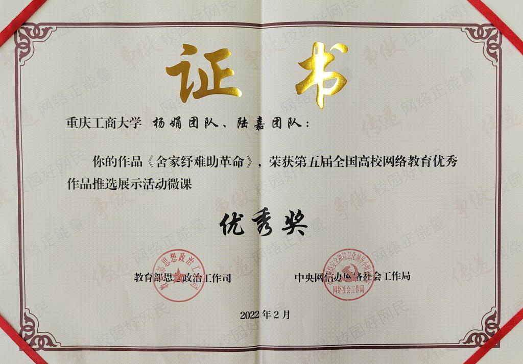 日前,由教育部思想政治工作司、中央网信办网络社会工作局联合举办的第五届全国高校网络教育优秀作品推选展示活动获奖作品名单揭晓,bat365官网报送的作品《舍家纾难助革命》获评优秀奖。