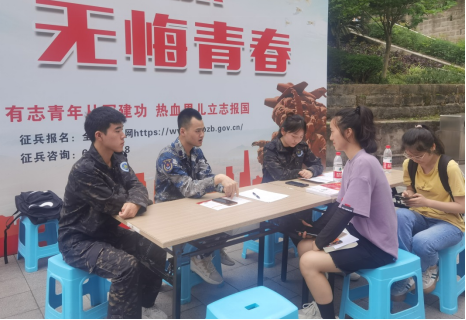 为加强征兵政策宣传,做好2022年秋季大学生应征入伍工作,由bat365中文官方网站党委武装部主办,国防教育协会承办的2022年秋季征兵宣传活动于5月25日至27在南岸校区、兰花湖片区、江北校区顺利开展。