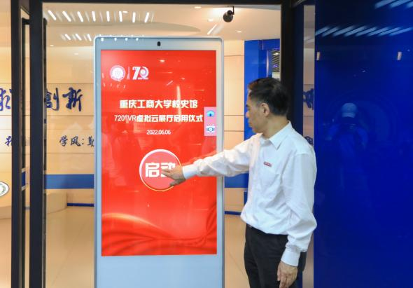 在与会人员的共同瞩目和热烈掌声中,学校党委书记李志雄、校长孙芳城为实体校史馆揭牌。李志雄点击启动新版720°VR虚拟网上校史馆全景“云展厅”,标志着bat365官网校史馆线上线下正式开馆。