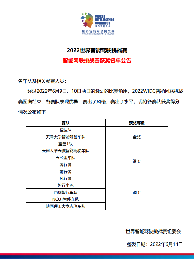 近日,2022世界智能驾驶挑战赛(WIDC)在天津市东丽区举办。大赛由国家发展和改革委员会、科学技术部、工业和信息化部、国家互联网信息办公室、中国工程院、中国科学院、中国科学技术协会和天津市人民政府共同主办,东丽区人民政府、中国汽车研究中心有限公司、中国生产力促进中心协会、中国人工智能学会智能驾驶专业委员会等专业机构共同承办。本届赛事共吸引了包括清华大学、吉林大学、东南大学、哈尔滨工业大学、天津大学、北京交通大学、极狐、蔚来、理想、小鹏、长安、哈弗等140多所国内外高校和企业参加。