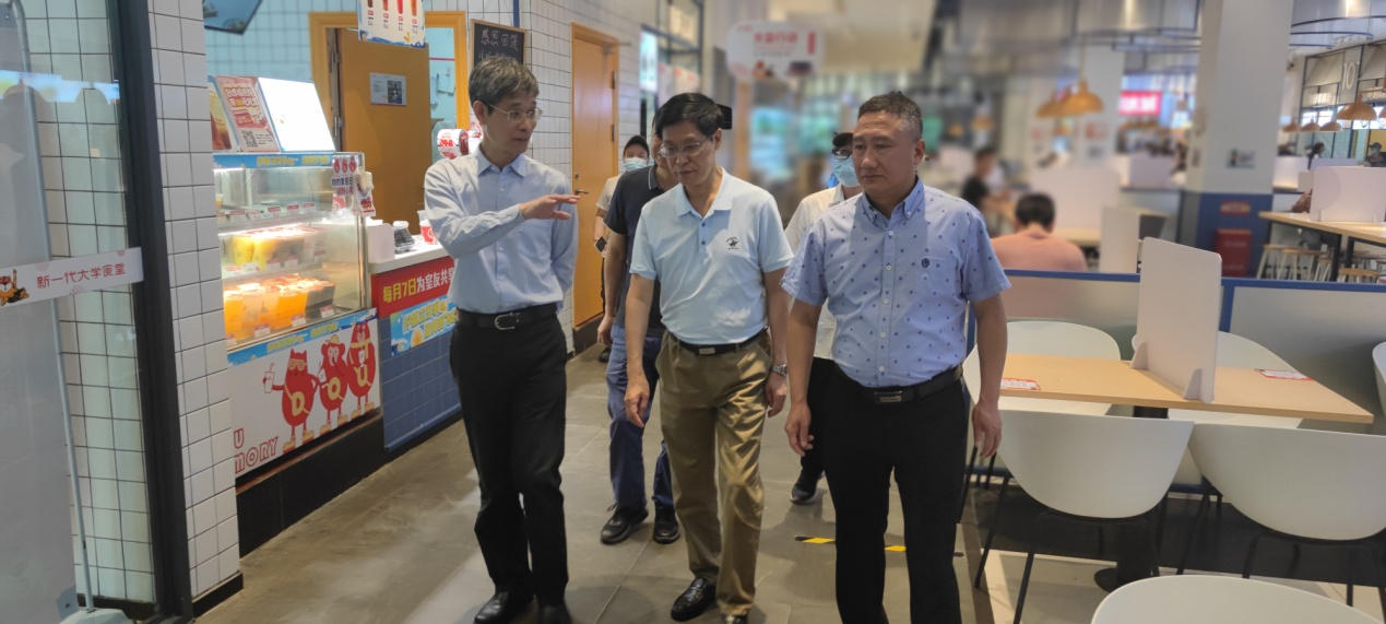 为切实做好常态化疫情防控期间学校食堂食品卫生安全工作,保障师生饮食安全,6月13日上午,校长孙芳城、副校长陈兴述深入松园食堂、菊园食堂、筱园食堂检查指导食品安全卫生工作,后勤处和各食堂相关负责人陪同检查。