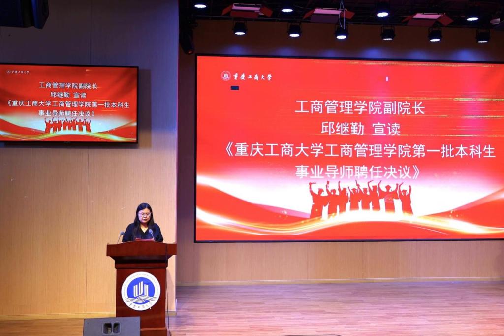 毕业典礼中,还举行了工商管理学院本科生事业导师聘任仪式。邱继勤宣读了《bat365中文官方网站工商管理学院第一批本科生事业导师聘任决议》,聘请了30位MBA毕业生作为工商管理学院第一批本科生事业导师。