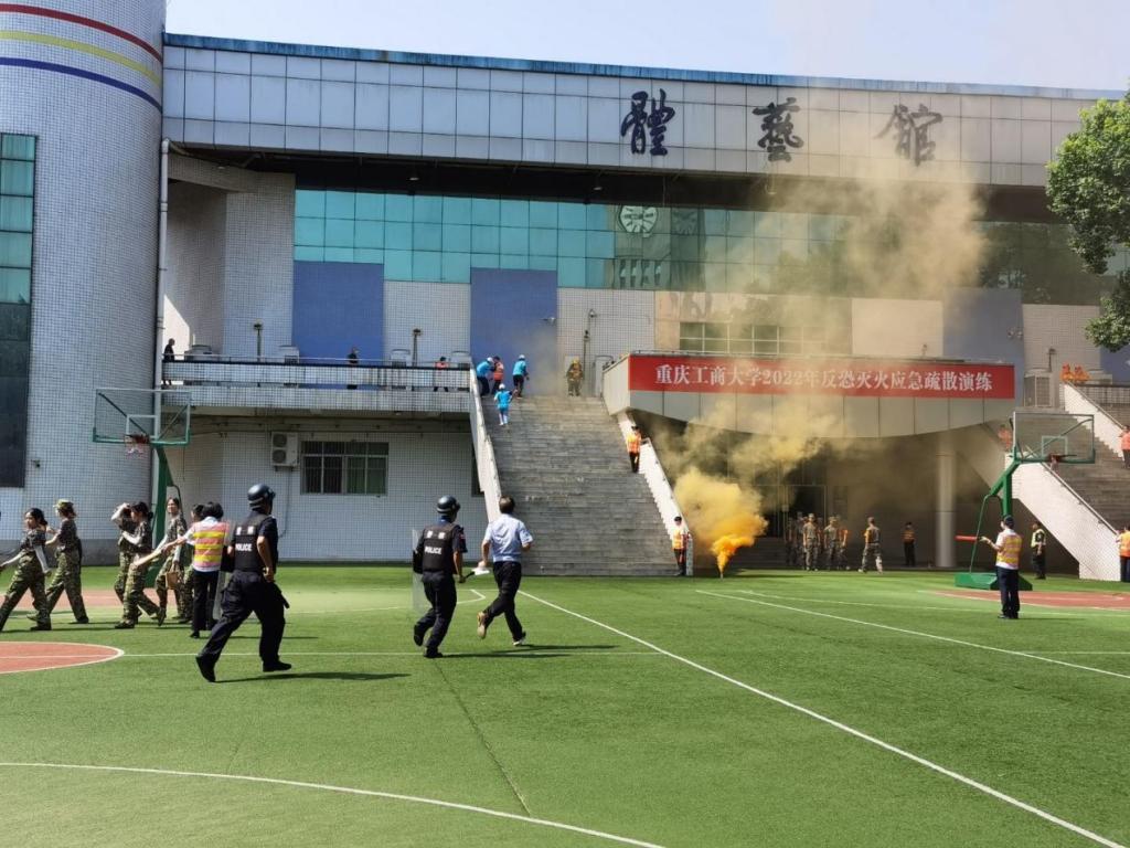 为进一步普及消防安全知识,切实增强广大师生员工的消防安全意识,提高师生应对突发事件应急处置能力,7月6日上午,bat365官网于南岸校区体艺馆开展反恐灭火应急疏散演练。党委保卫部(保卫处)组织指挥,物业、校园安保人员、军训一团部分教官、2175名军训学生,南岸区二塘消防站和四公里派出所的部分工作人员参与此次演练。