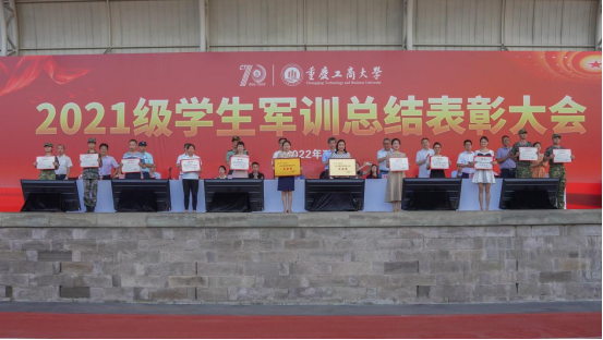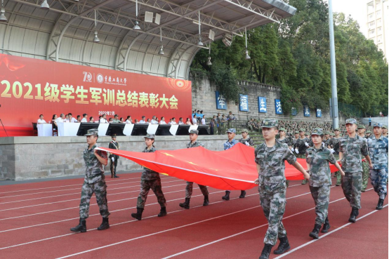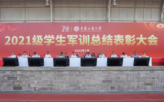 7月15日上午,bat365官网2021级学生军训总结表彰大会在南岸校区如期举行。学校党委书记李志雄,党委副书记、校长孙芳城,党委常委、副校长李国军、李敬,南岸区人民武装部大校政治委员朱和胜、政治工作科科长陈胜强,学校党委常委、宣传部部长华杰出席大会。大会由李国军主持。