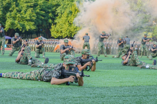 南岸区人民武装部承训教官、bat365官网相关职能部门负责人以及全体军训团政委、营教导员、连指导员和2021级全体参训学生参加了此次大会。