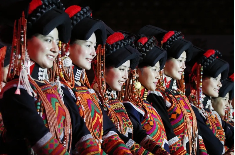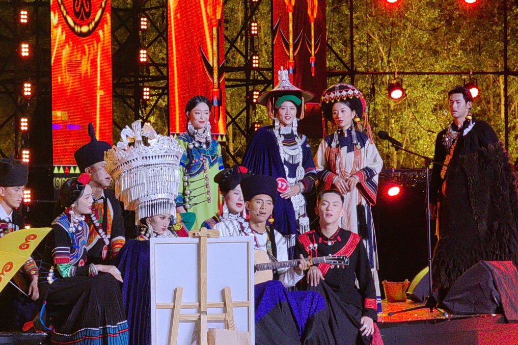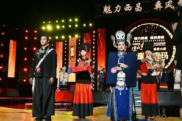 选手们穿着传统的彝族盛装在评委和观众面前一一亮相。通过自我介绍、才艺展示环节展现了彝家儿女的风采。