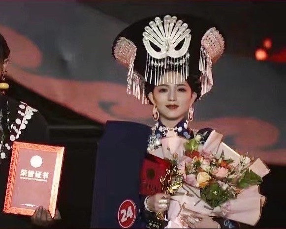 她很开心能够获得这次比赛的冠军还有特殊的意义,因为这袭宝蓝色长裙是她的妈妈亲手为她缝制的。她的母亲是凉山州知名的彝绣传承人,能够为女儿做一套盛装去参加选美,是妈妈一直以来的心愿。
