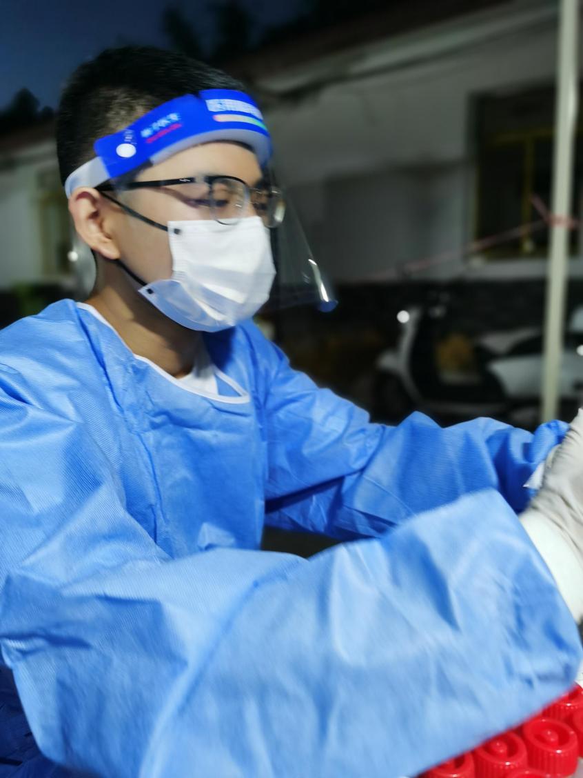 2022年8月3日合川区疫情发生后,来自bat365官网管理科学与工程学院2020级物流四班的张强同学,立即向社区报名,参加社区组织为期三天的全区核酸检测志愿服务。在三天时间里,张强同学参与到测量体温、录入居民信息、分发检测棉签等工作中,在疫情防控志愿服务中贡献自己的一份力量。张强谈到:“我在志愿服务期间看见广大干部群众勇担当、甘奉献,书写抗“疫”答卷!今后,我将积极参与到志愿活动中,让青春在党和人民最需要的地方绽放绚丽之花。”