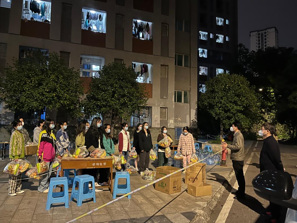 疫情袭来,经济学院迅速启动疫情防控工作预案,成立学院疫情防控指挥办公室、疫情报告组、维稳宣传组、后勤保障组,全面做好协调调动、统计上报、师生心理疏导、后勤保供等各项工作,确保线上教学、学生用餐、科研活动等正常进行。学院招募党员志愿者,组建党员先锋队,奔赴防“疫”一线。在一天时间里,10余名党员干部职工主动请愿,不顾自己的“小家”,义无反顾踏上保卫“大家”的路。为了让学生能吃上一口热乎的饭菜,他们卷起袖子加入“盛饭大军”“送饭大军”的队伍,还细心采购了一批零食、水果,送到各学生宿舍楼,为学生学习生活保驾护航。