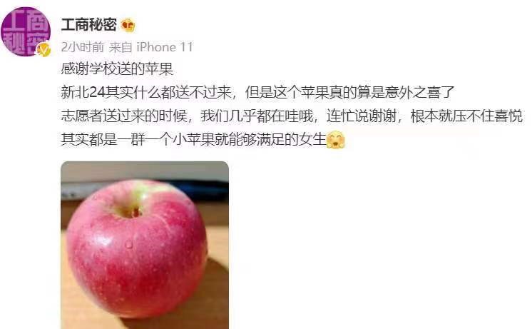 10月15日上午,在校长孙芳城的协调下,会计学院、侨联、民进工商大学支部、市工商机械行业分会等组织与爱心人士同心协力,奉献爱心,分三批捐赠12000斤共计25000个多苹果和数百件饮用水,并于当日分发到在校同学手中。收到“爱心投喂”的同学们纷纷表示,特殊时期能够吃上苹果感到非常温暖。小小苹果给校园送来了“苹”安快乐。
