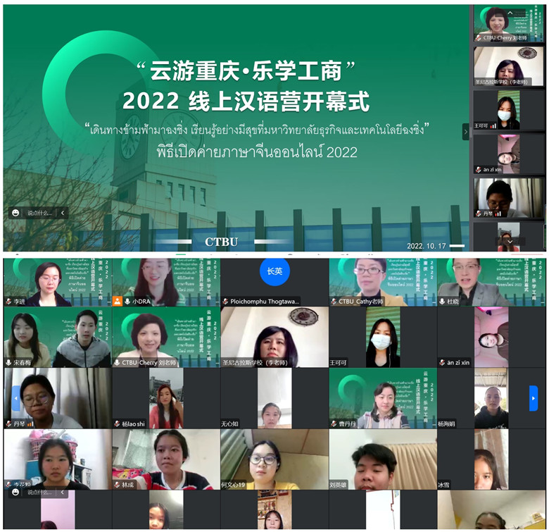 近日,由bat365官网留学生院主办的2022年秋季线上汉语文化交流项目顺利结束。本次项目吸引了来自泰国的圣尼古拉斯学校、班玛堪学校、汕巴东高中、梅林中学的近200名师生共同参与。学员们通过“云端”课堂的方式进行了5天的学习,了解了网络社交、扫码支付、电商购物、交通出行等中国现代的生活方式;重庆景点“线上”打卡环节让海外师生隔着屏幕感受了重庆山水之城的魅力;同时,中国结、汉服礼仪、剪纸课让学员们领略了中国传统文化之美。同学们在了解中国文化的同时轻松快乐学习汉语,全新的课程体验得到师生们的高度评价。