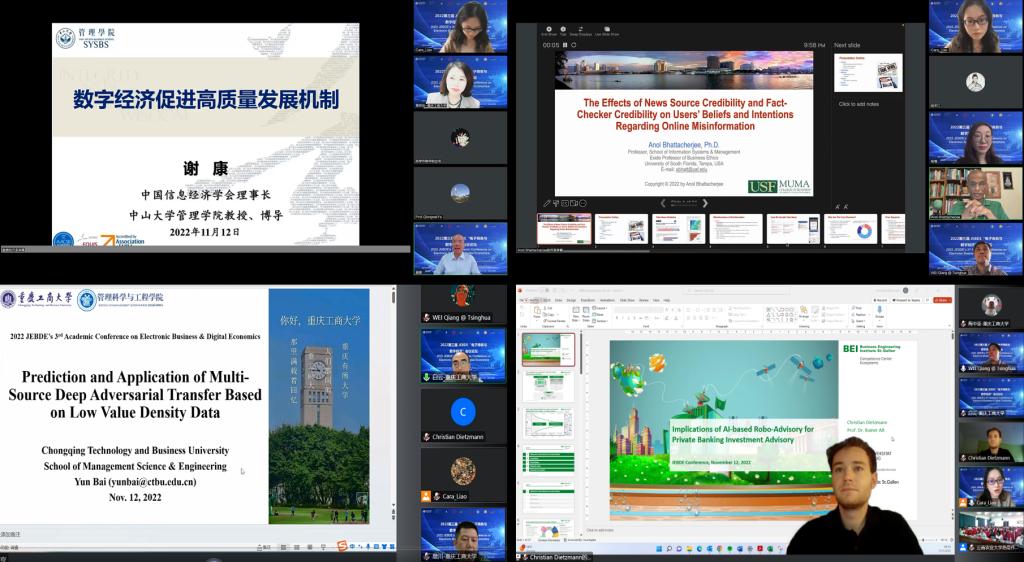 为深入学习贯彻党的二十大精神,落实数字经济与实体经济深度融合的根本要求,助力国家和地区经济发展,bat365中文官方网站管理科学与工程学院于11月12日成功在线举办第三届“电子商务与数字经济”会议。中国信息经济学会谢康理事长、云南大学罗裕梅博士、美国南佛罗里达大学Anol Bhattacherjee教授、德国莱比锡大学Rainer Alt教授、bat365中文官方网站白云副教授等参会并作学术报告。本次会议论坛还邀请了大会名誉主席bat365中文官方网站校长孙芳城教授,大会主席bat365中文官方网站管理科学与工程学院院长黄钟仪教授、云南财经大学叶琼伟教授、韩国釜山大学牟健博士、清华大学卫强教授等行业专家和学者。