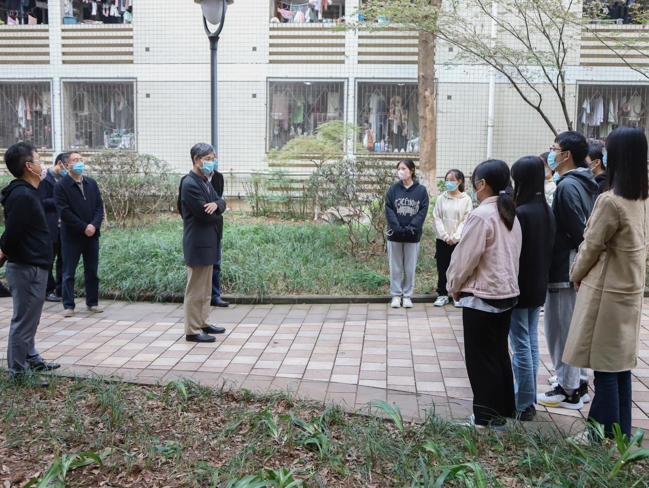 面对当前我市严峻复杂的疫情形势,全校上下闻令而动,以最严的要求、最快的速度、最实的举措,迅速吹响了抗疫集结号,包括校领导在内的各级领导干部、教师志愿者、学生管理工作队伍、后勤人员、安保人员等入住学校,为进一步落实疫情防控工作相关要求,确保学校教育教学管理工作平稳有序。近日,学校党委书记李志雄,党委副书记、校长孙芳城等校领导分头到各校片区调研指导疫情防控管理措施落实情况,看望慰问值守一线的工作人员和在校学生。