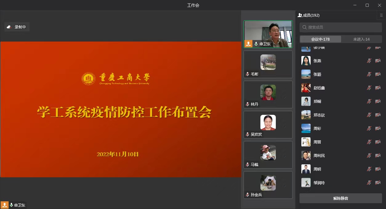 11月以来,重庆市新冠肺炎疫情形势严峻、情况复杂,bat365中文官方网站学工系统全体人员在学校党委的坚强领导下,坚决贯彻落实中央和重庆市委的有关部署和要求,以高度的责任心和强烈的使命感,众志成城,共克时艰,全力以赴做好疫情防控工作。