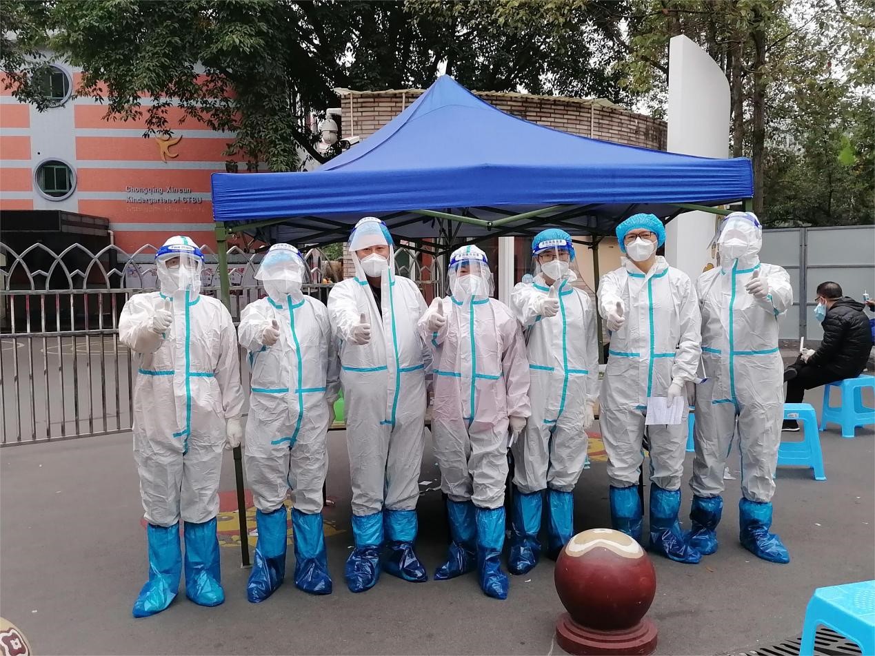 应急预案随即启动,各组工作人员迅疾到岗,指挥中心彻夜通明,从校领导到全体教职工从速进入工作状态。全校一盘棋,上下一条心,全校师生共同面临这场 “新的大考”。为保证全校师生安全,全体校领导分片包干、靠前指挥,校党委发出动员令:战“疫”没有旁观者,人人都是战斗员。转发《中共重庆市委教育工作委员会致全市教育系统党员干部的倡议书》,号召全体党员干部积极响应倡议,将学习践行党的二十大精神落实到疫情防控工作中,为坚决打赢中心城区疫情歼灭战作出贡献。校党委第一时间向各级党组织和广大党员干部发出志愿者集结令,号召各级党组织和广大党员干部,主动担当作为,带头做好表率。校防控办迅速发布《聚星成炬 共筑防线——致bat365中文官方网站全体师生员工的倡议书》,号召全体师生员工,以高度责任感和使命感始终保持“战斗”状态,积极投入各项工作,汇聚起重工商大人齐心抗疫、守望相助的坚强力量。广大党员干部、教职员工闻令而动、冲锋在前,289名教师志愿者迅速集结,开展核酸检测登记、家属区分餐、社区防疫等疫情防控工作。截至目前,已累计开展各项志愿服务586人次。