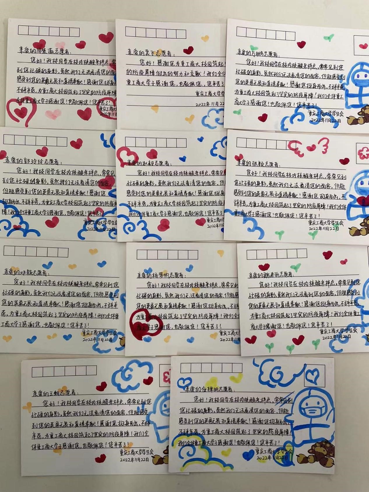 这段时间以来,重工商大的学生们更懂事了,尽管自己在生活上学习上有诸多不便,他们也给予学校最大的理解和支持,他们把学校的努力和周到看在眼里、记在心上、发在朋友圈:“我们是被重工商大爱着的孩子们……”“再这样下去,我们胖了,老师瘦了。”有的主动建议为食堂后勤阿姨们捐保暖衣被,有的主动要求为来校支援的医务工作志愿者送水果和卡片。