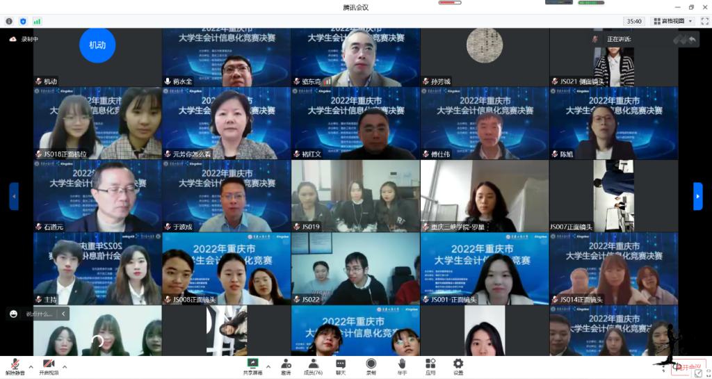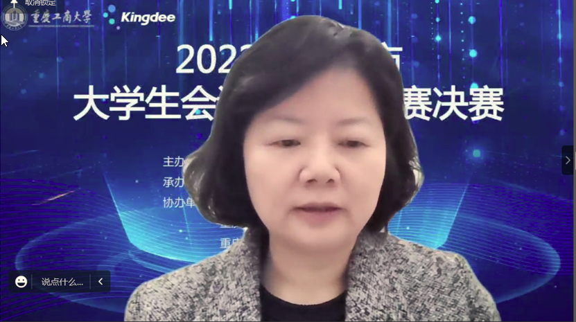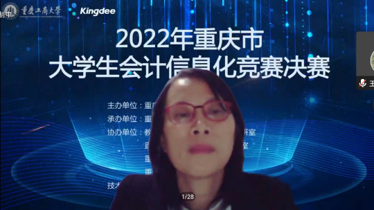 为积极适应数字化时代需要,推动高校财会类专业“新文科”建设,推进会计信息化教育教学改革,增进全市高校财会类师生交流,提升大学生会计信息化素养和实践创新能力,由重庆市教育委员会主办,bat365中文官方网站承办,教育部会计信息化课程虚拟教研室、重庆市成渝数智会计虚拟教研室、重庆市会计信息化名师工作室、bat365中文官方网站会计学院协办,金蝶软件(中国)有限公司提供技术支持,2022年重庆市大学生会计信息化大赛决赛于11月19日在bat365中文官方网站顺利进行。全市共有18所院校的22支队伍通过初赛选拔进入到决赛。重庆市教委高教处处长蒋云芳、bat365中文官方网站校长孙芳城出席了决赛开幕式。本次决赛采取线上方式进行。