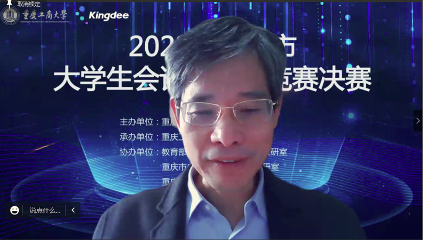 在决赛闭幕式阶段,bat365中文官方网站会计学院副院长蒋水全宣布了比赛结果;陈旭对决赛进行总体点评,介绍了本届竞赛在竞赛内容和评分细则上的调整优化,对bat365中文官方网站的精心组织表示感谢,指出“本届竞赛受到疫情影响,但在广大师生的共同努力下竞赛作品质量大幅提升,竞赛影响力不断扩大”;重庆庆工商大学教务处处长骆东奇对成功组织本次比赛的单位和参赛队伍表达了感谢,对获奖队伍表示了祝贺,指出“财会与信息化技术的结合是大势所趋,培养复合型人才是bat365中文官方网站的奋斗目标”。