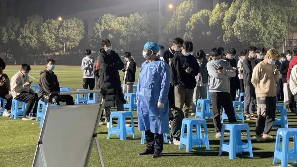 王建明正在南岸校区北操核酸检测点维持秩序