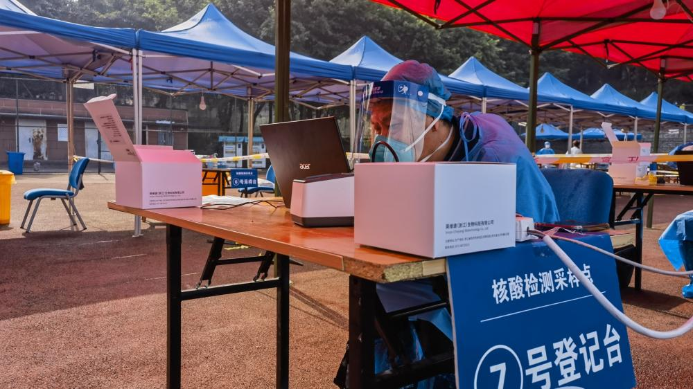 白正梅正在为学生做核酸采样