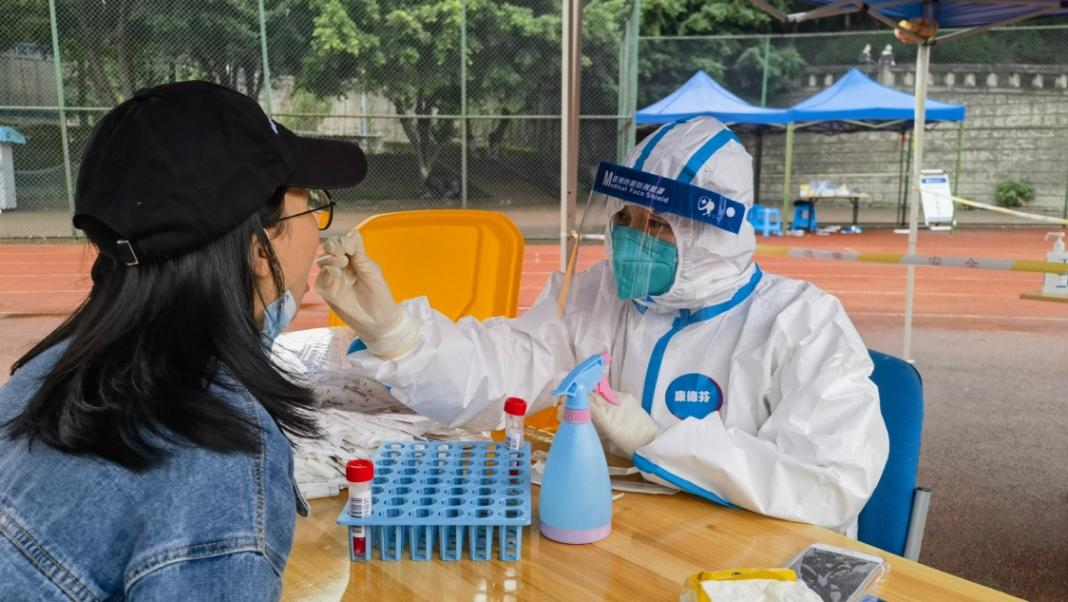 詹川正在为兰花湖片区教职工做核酸采样