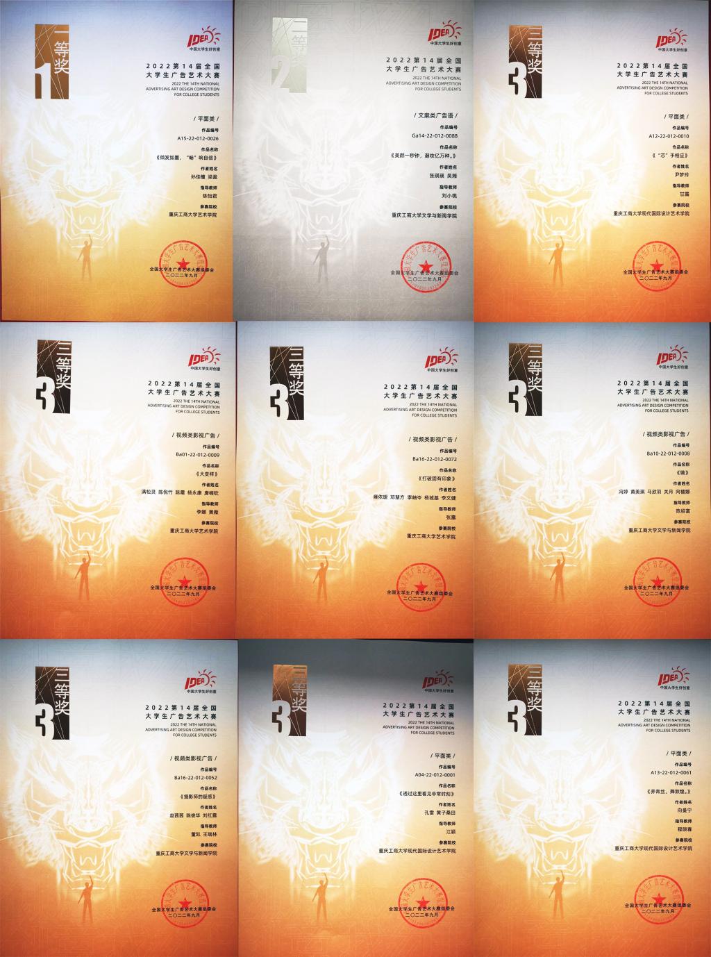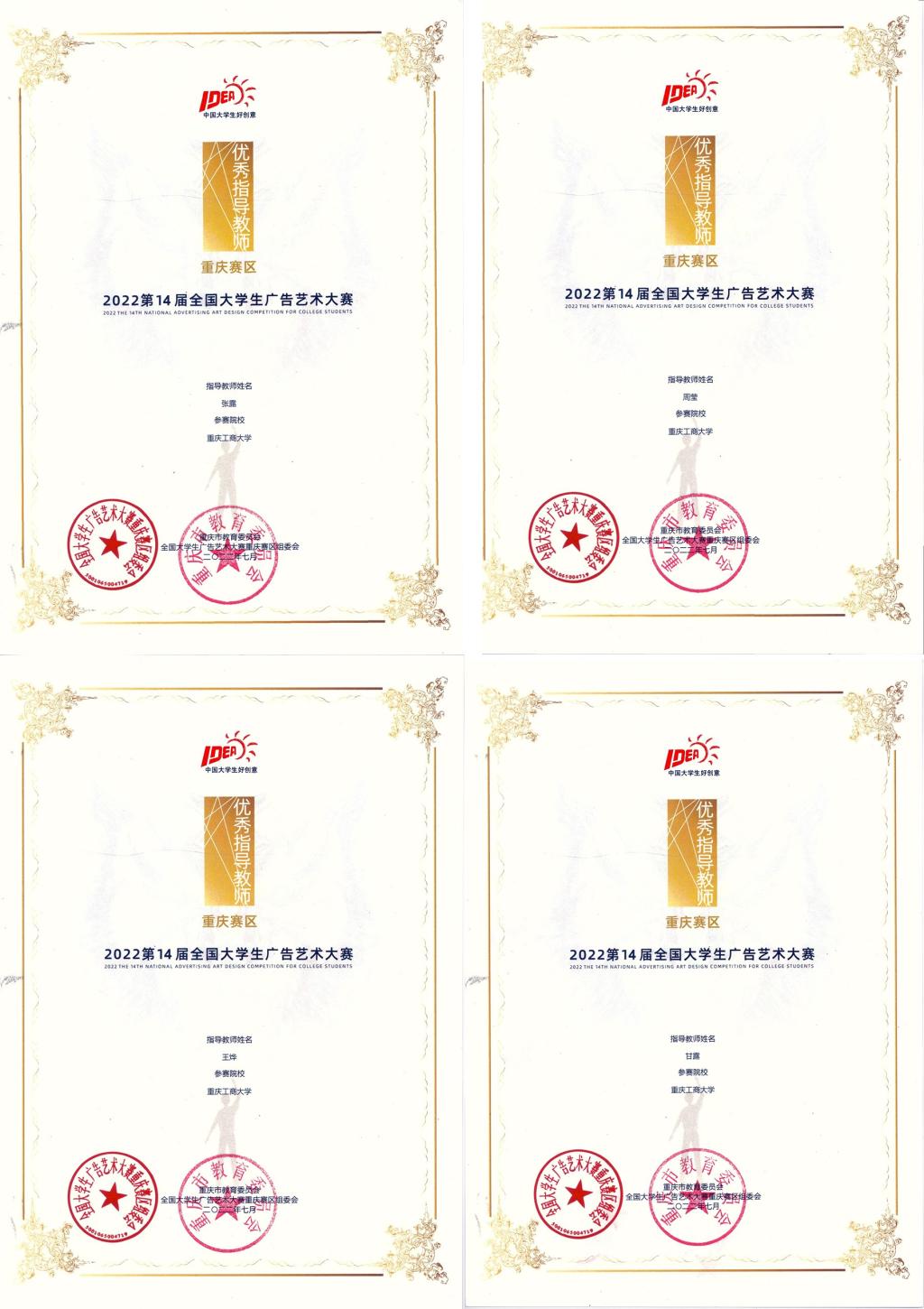 在日前成功闭幕的第十四届全国大学生广告艺术大赛上,bat365官网学生参赛作品获全国赛区一等奖1项、二等奖1项、三等奖7项、优秀奖23项;重庆赛区一等奖1项、二等奖6项、三等奖32项、优秀奖181项。学校获评优秀院校。张露、周莹、王烨、甘露等4名老师获重庆赛区优秀指导教师。